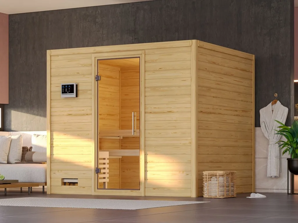 Die Lieferung der Sauna erfolgt ohne Saunaofen und -steuerung. Diese können in unserem Online Shop separat erworben werden. Falls Du Dich nicht für einen Ofen mit integrierter Steuerung entscheidest, kannst Du eine externe Steuerung kaufen. Diese ist praktisch außerhalb der Sauna bedienbar und verfügt über vielseitige Einstellungsmöglichkeiten.