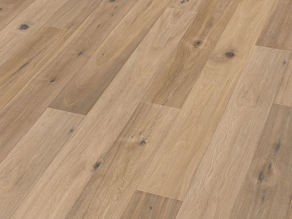 Die Optik des Bodens ist authentisch und abwechslungsreich - einfach zum Wohlfühlen. Der robuste Look des Eichenholzes wird durch seine technischen Vorteile bestätigt: es ist sehr hart, ökologisch, langlebig und zäh - ein Holz für die Ewigkeit.