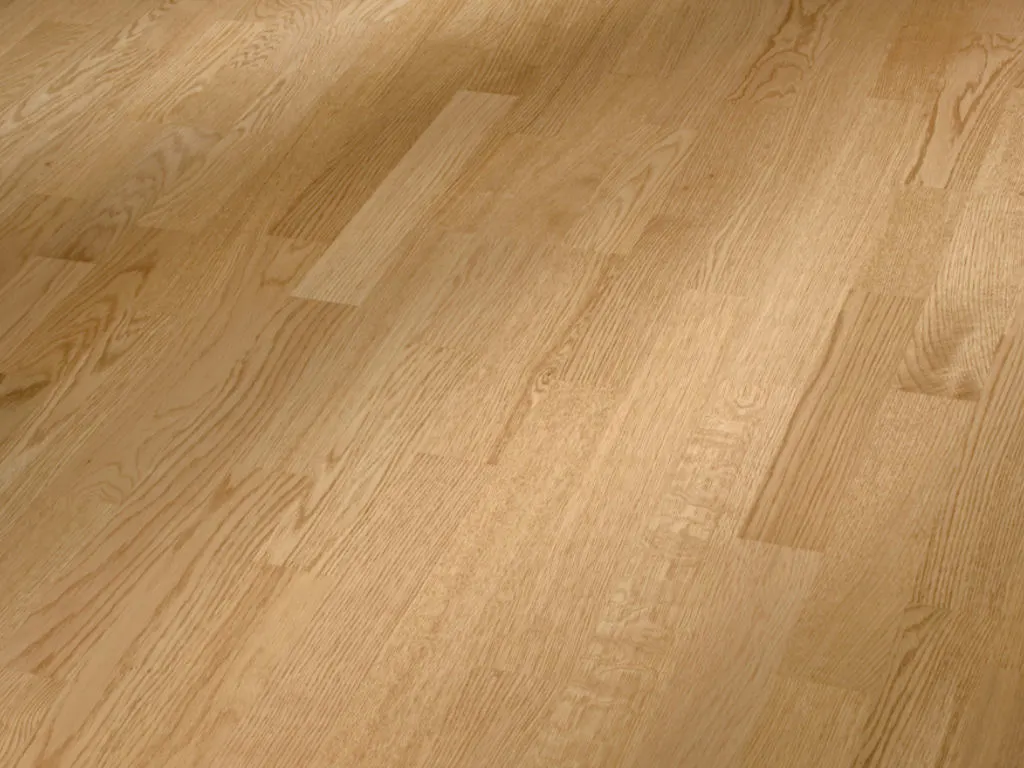 Die Dielen haben eine Breite von 20 cm, eine Länge von 240 cm und sind 1,3 mm stark. Mithilfe der Klickverbindung "Masterclic Plus" kann der Boden problemlos schwimmend verlegt werden.3-Schicht-Parkett besteht aus einer Edelholz-Nutzschicht, einer Mittellage aus MDF, HDF oder Holz (z. B. Pappel oder Fichte) sowie einem Gegenzug, der dem Verziehen des arbeitenden Holzes entgegenwirkt. Es besitzt einen symmetrischen Aufbau und damit optimale Dimensionsstabilität bei zum Beispiel höherer Luftfeuchtigkeit. Die 2,5 mm starke Nutzschicht macht den Bodenbelag besonders pflegeleicht und robust. Dank der hervorragenden thermischen Leitfähigkeit eignet sich der Boden sehr gut zur Verlegung über einer Warmwasserfußbodenheizung.