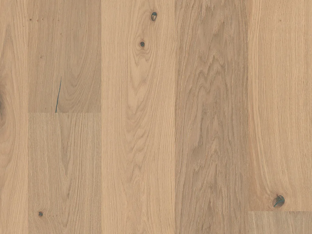 Von weicheren Holzschichten befreit, bildet das harte, stabile Kernholz der Diele eine fühlbar strukturierte, dreidimensionale und lebendig wirkende Oberfläche. Die Oberflächenbehandlung mit reinem natürlichem Öl bietet Pflege und Schutz in einem.
