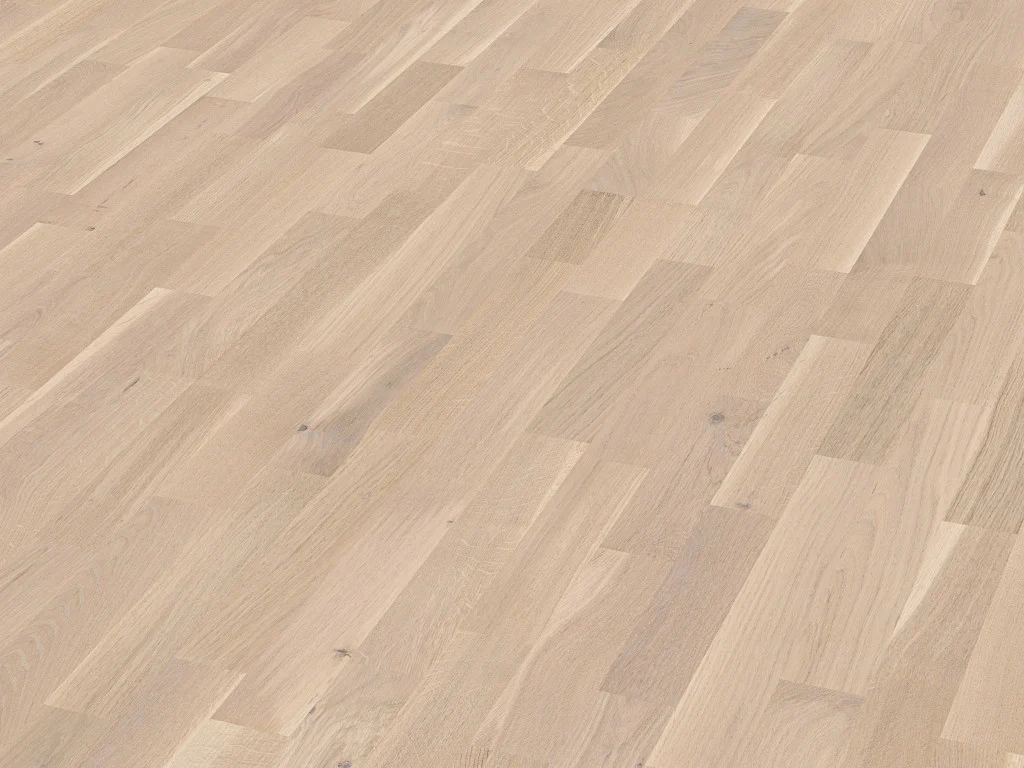 Charakteristisch bei diesem Eiche -Boden sind die exklusiven Dielen, die mit ihrer beachtlichen Länge von 2400 mm die ungebrochene Dynamik echten Holzes ausstrahlen.
