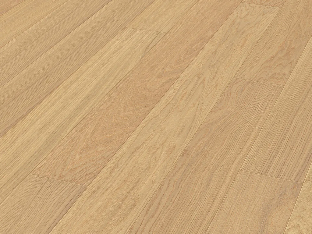 Optisch und auch haptisch gibt dieser Boden aus Eiche einiges her: die natürlich bis lebhafte, individuelle Maserung und der gediegene, matte Glanz dieses Hart- und Edelholzes verleihen Deinem Wohnraum einen Hauch von Luxus.