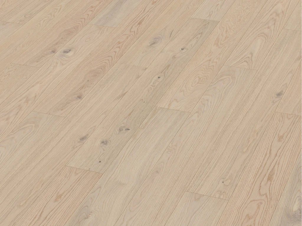 Die Optik des Bodens ist authentisch und abwechslungsreich – einfach zum Wohlfühlen. Der robuste Look des Eichenholzes wird durch seine technischen Vorteile bestätigt: es ist sehr hart, ökologisch, langlebig und zäh – ein Holz für die Ewigkeit.