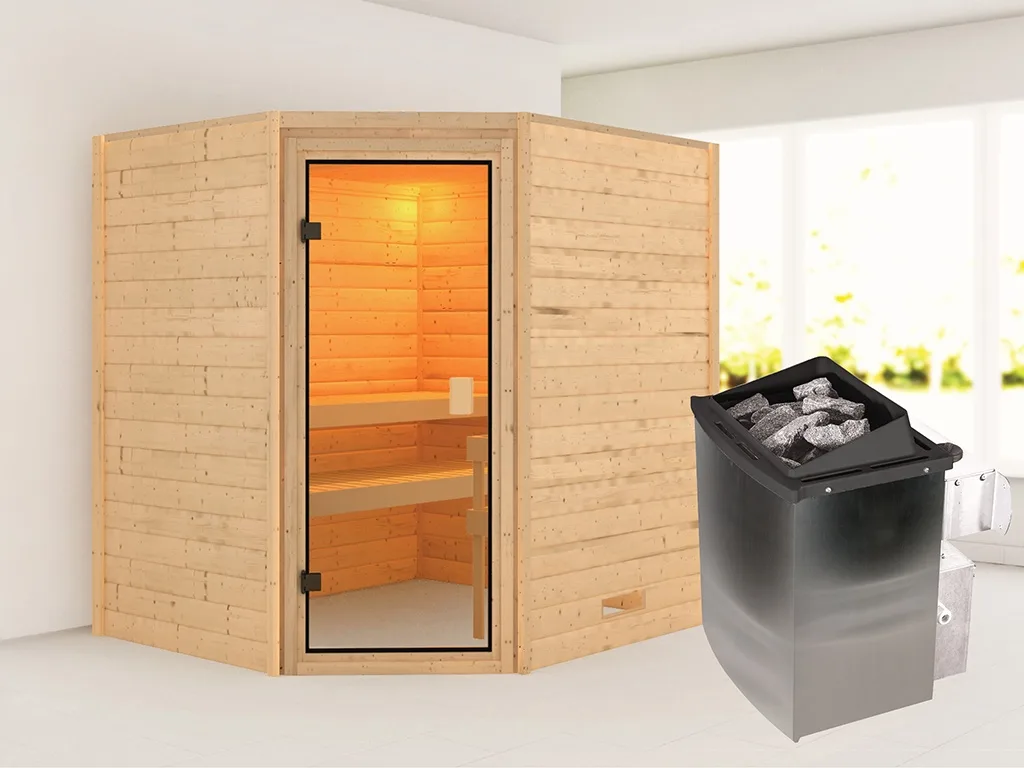 KARIBU WOODFEELING Sauna "Elea" mit bronzierter Glastür + 9 kW Saunaofen integrierte Steuerung
