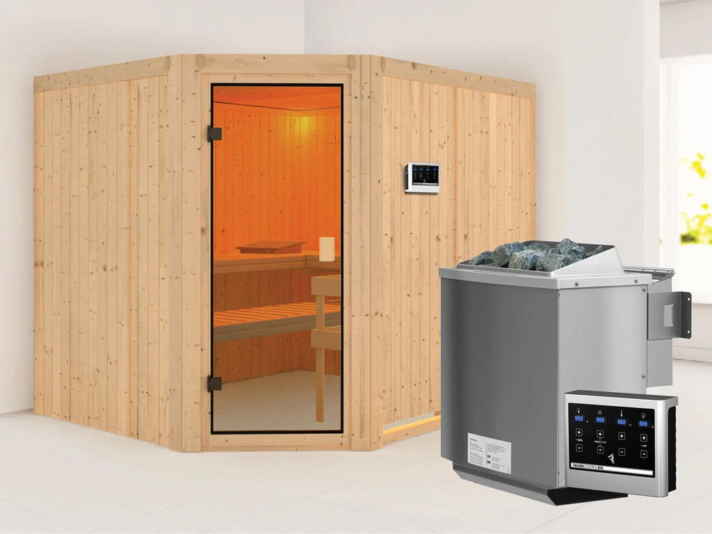 Sauna Horna mit bronzierter Glastür + 9 kW Bio-Kombiofen mit ext. Strg.