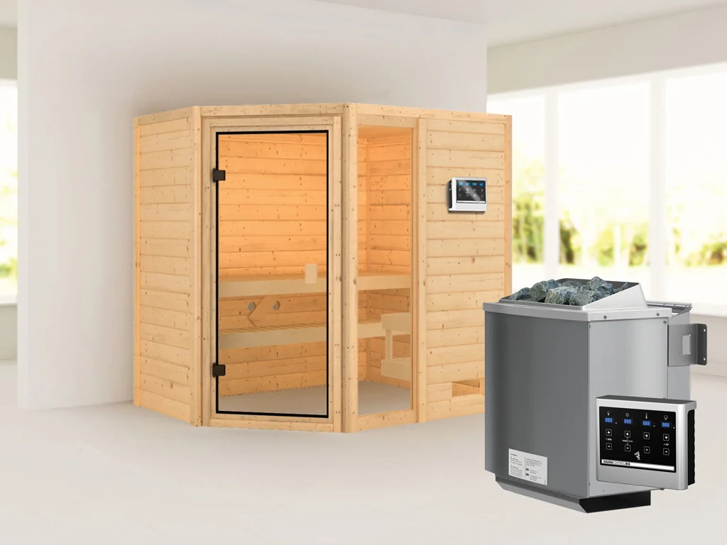 Sauna Jada mit bronzierter Glastür + 9 kW Bio-Kombiofen ext. Strg.