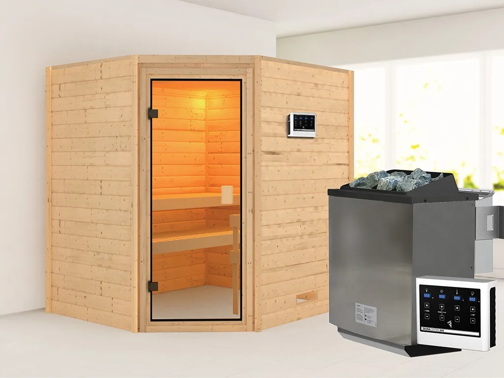 Sauna Massivholzsauna Mia, inkl. 9 kW Bio-Ofen mit externer Steuerung