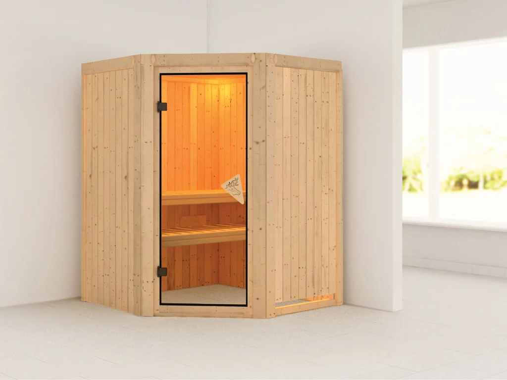 Dieses Saunamodell – eine System- bzw. Elementsauna – zeichnet sich durch seine besondere Sandwich-Bauweise aus, d.h. die Wandelemente bestehen aus einzelnen Schichten. Die bereits vorgefertigten Wandelemente ermöglichen einen schnellen Aufbau innerhalb weniger Stunden.
