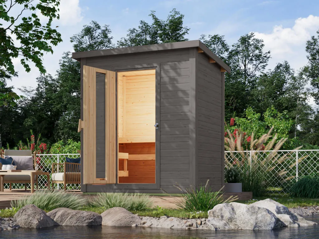 KARIBU Saunahaus Hytti 1 38 mm terragrau