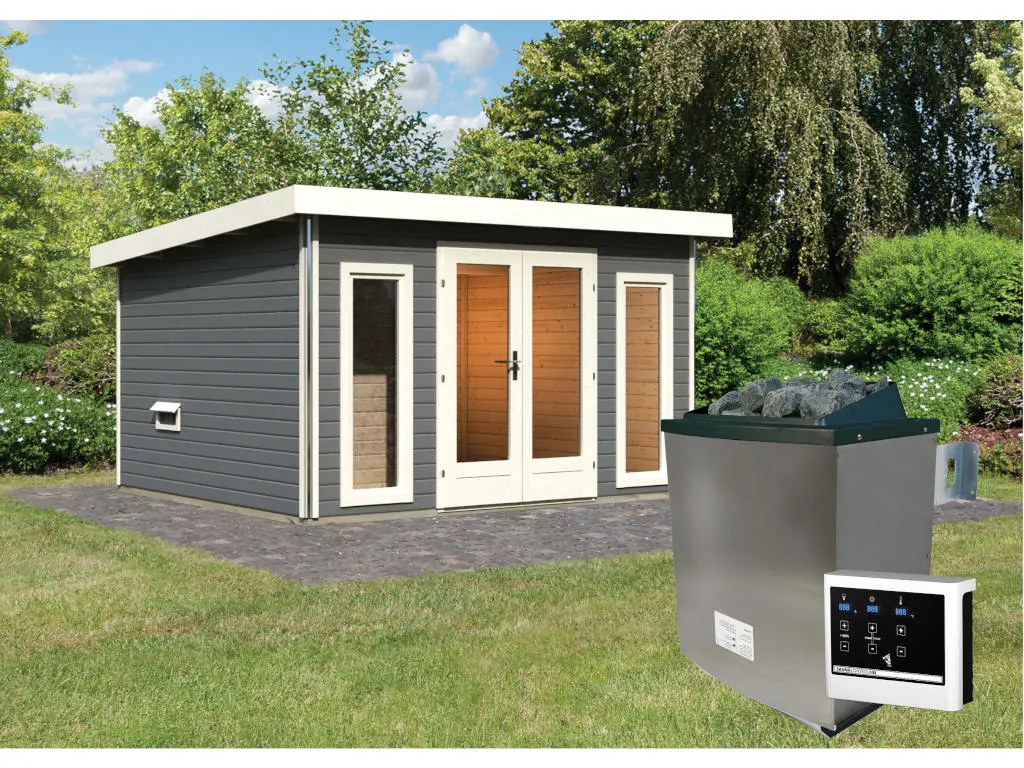 Unsere Wellnessartikel (Saunen, Saunahäuser, Saunafässer, Kotas, Infrarotkabinen, Saunaöfen etc.) dürfen nur für den privathäuslichen Gebrauch verwendet werden! Saunaöfen und dazugehörige Steuerelemente dürfen nur durch einen örtlich zugelassenen Elektroinstallateur mittels festem Anschluss an das Netz angeschlossen werden. Ausnahme: 230 Volt Plug-&-Play-Saunaöfen. Die Mindestsicherheitsabstände vom Ofen zur Wand und vom Ofen zum Ofenschutz müssen unbedingt eingehalten werden. Bei 9-kW-Öfen muss die Höhe des Ofenschutzes angepasst werden. Bitte beachte zu den obig genannten Hinweisen die beigefügten Montageanleitungen.