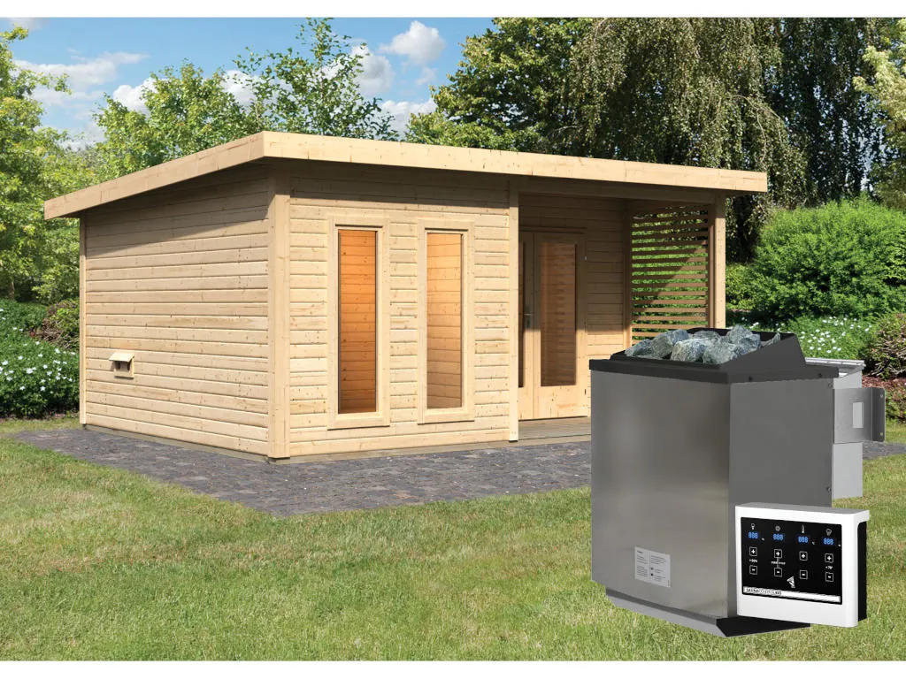 Unsere Wellnessartikel (Saunen, Saunahäuser, Saunafässer, Kotas, Infrarotkabinen, Saunaöfen etc.) dürfen nur für den privathäuslichen Gebrauch verwendet werden! Saunaöfen und dazugehörige Steuerelemente dürfen nur durch einen örtlich zugelassenen Elektroinstallateur mittels festem Anschluss an das Netz angeschlossen werden. Ausnahme: 230 Volt Plug-&-Play-Saunaöfen. Die Mindestsicherheitsabstände vom Ofen zur Wand und vom Ofen zum Ofenschutz müssen unbedingt eingehalten werden. Bei 9-kW-Öfen muss die Höhe des Ofenschutzes angepasst werden. Bitte beachte zu den obig genannten Hinweisen die beigefügten Montageanleitungen.