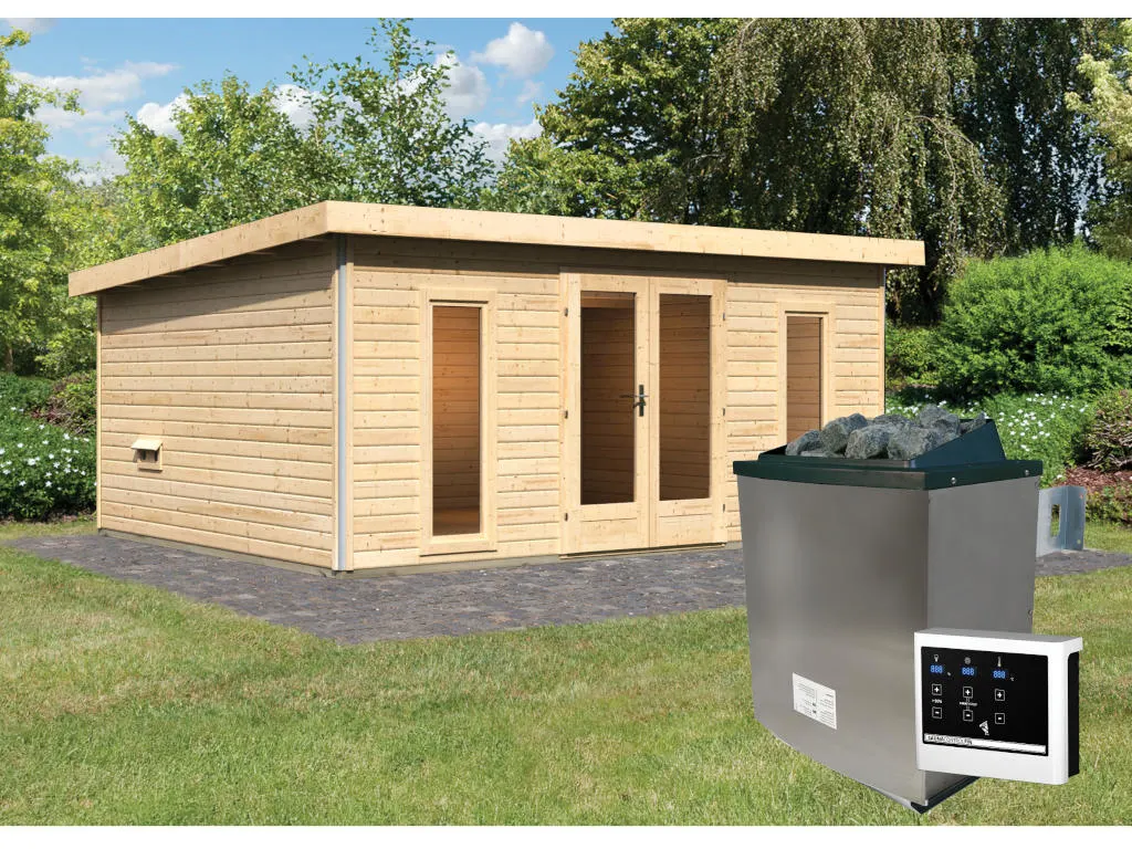 Unsere Wellnessartikel (Saunen, Saunahäuser, Saunafässer, Kotas, Infrarotkabinen, Saunaöfen etc.) dürfen nur für den privathäuslichen Gebrauch verwendet werden! Saunaöfen und dazugehörige Steuerelemente dürfen nur durch einen örtlich zugelassenen Elektroinstallateur mittels festem Anschluss an das Netz angeschlossen werden. Ausnahme: 230 Volt Plug-&-Play-Saunaöfen. Die Mindestsicherheitsabstände vom Ofen zur Wand und vom Ofen zum Ofenschutz müssen unbedingt eingehalten werden. Bei 9-kW-Öfen muss die Höhe des Ofenschutzes angepasst werden. Bitte beachte zu den obig genannten Hinweisen die beigefügten Montageanleitungen.