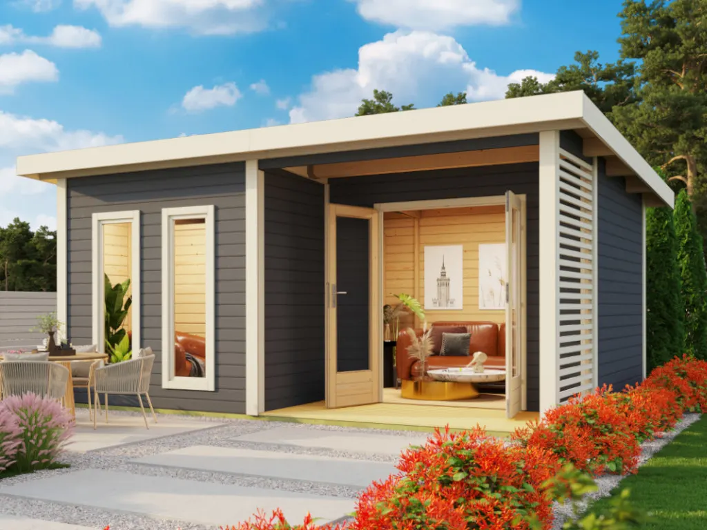 KARIBU Saunahaus Mainburg 5 terragrau 38 mm