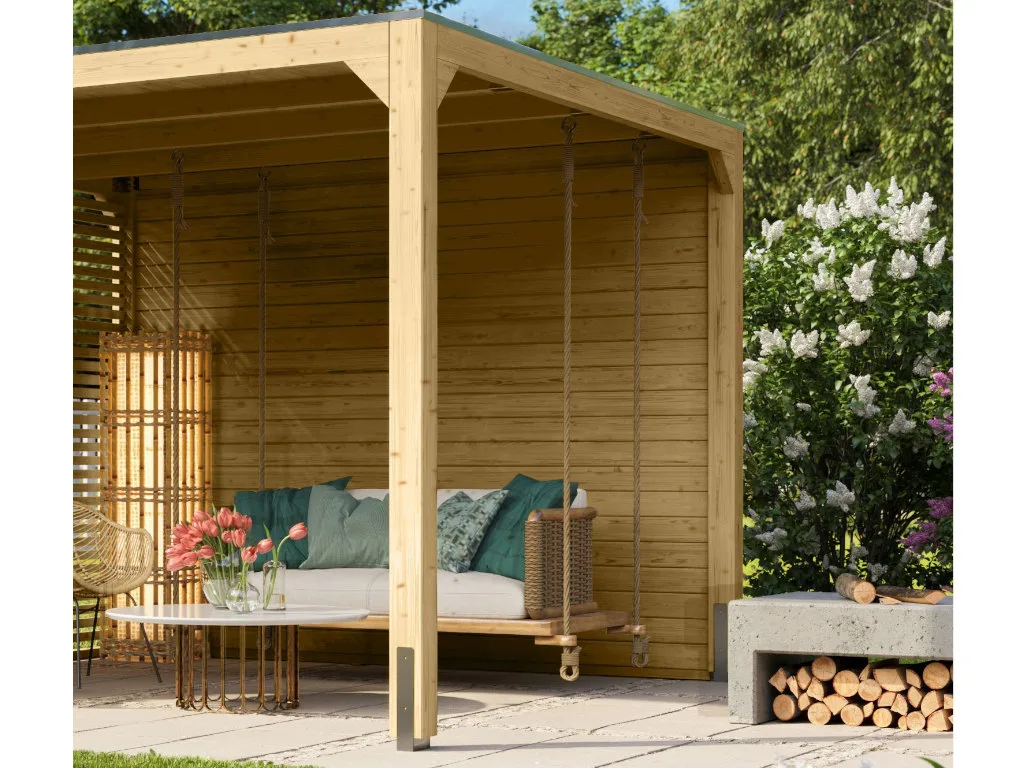 Erweitere die Funktionalität und den Charme deines Pavillons mit unserer hochwertigen Fichten-Seitenwand. Mit einer großzügigen Breite von 295 cm und einer imposanten Höhe von 235 cm bietet diese Seitenwand eine perfekte Ergänzung für Pavillons mit einer Wandstärke von 28 mm. Hergestellt aus erstklassigem Fichtenholz, garantiert diese Seitenwand nicht nur eine robuste Konstruktion, sondern auch eine natürliche Schönheit, die deinen Außenbereich aufwertet. Das naturbelassene Aussehen fügt sich nahtlos in deinen Garten ein. Einfach zu installieren und mit einer passenden Wandstärke von 28 mm kompatibel, bietet diese Seitenwand eine vielseitige Plattform für kreative Gestaltungsmöglichkeiten. Ob als stilvolle Abgrenzung, Hintergrund für dekorative Elemente oder als Rankgitter für Kletterpflanzen – die Möglichkeiten sind endlos.