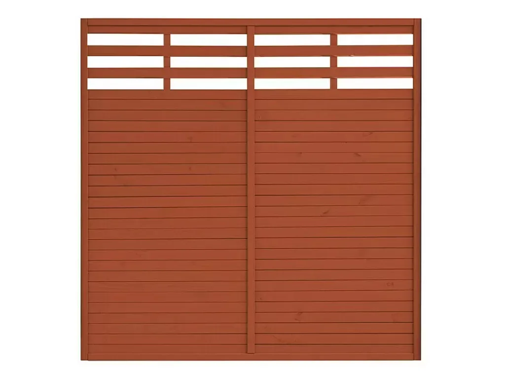 Dank seiner Lasur in schickem Teak ist dieser Zaun besser vor Witterungseinflüssen geschützt.