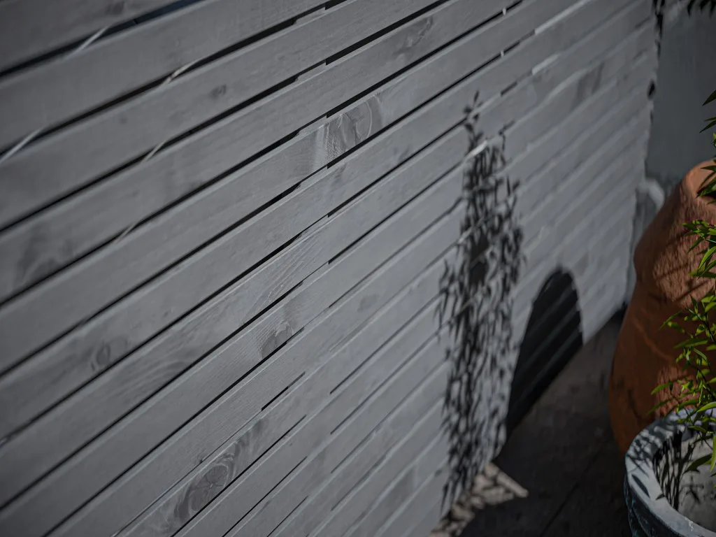 Dieses Modell ist aus hochwertigem Kiefernholz hergestellt. Kiefer ist leicht zu bearbeiten und besitzt eine gleichmäßige gerade Faserstruktur. Auch ist Kiefernholz dank kurzer Transportwege das preiswerteste heimische Holz. Der Sichtschutzzaun ist mit einer Lasur in Grau vorlasiert. Diese Lasur verhält sich ähnlich wie eine Grundierung und bietet einen Grundschutz z. B. vor Feuchtigkeit. Je nach Witterung sollte eine Nachbehandlung mit einer Lasur erfolgen.