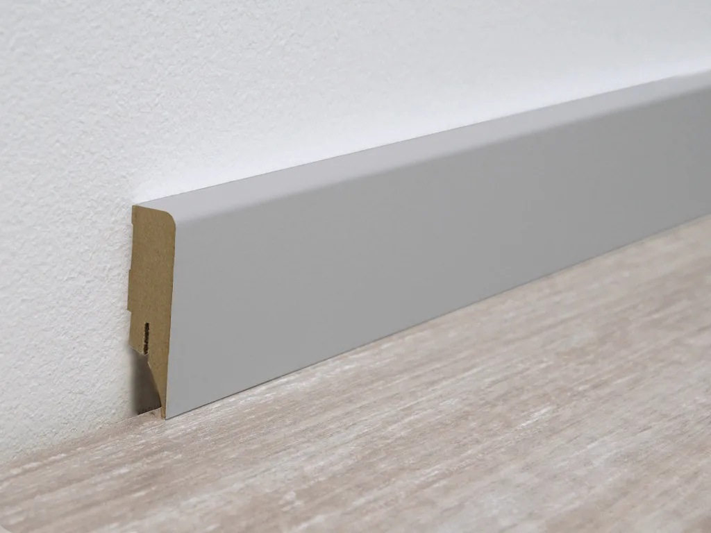 Folierte Sockelleiste mit stabilem MDF-Kern und ansprechendem Dekor.