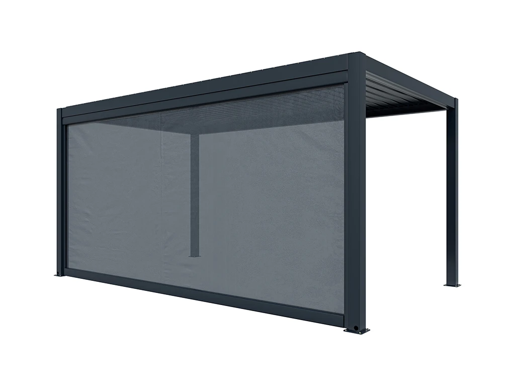 Der Sonnenschutz mit den Maßen 476 x 235 cm (L x H) wird an einer Seite der Pergola befestigt und je nach Variante entweder manuell oder elektrisch bedient, sodass du den Schatten genau nach deinen Bedürfnissen einstellen kannst. Dank seiner durchdachten Konstruktion lässt er sich leicht bedienen und sorgt im Handumdrehen für mehr Komfort.