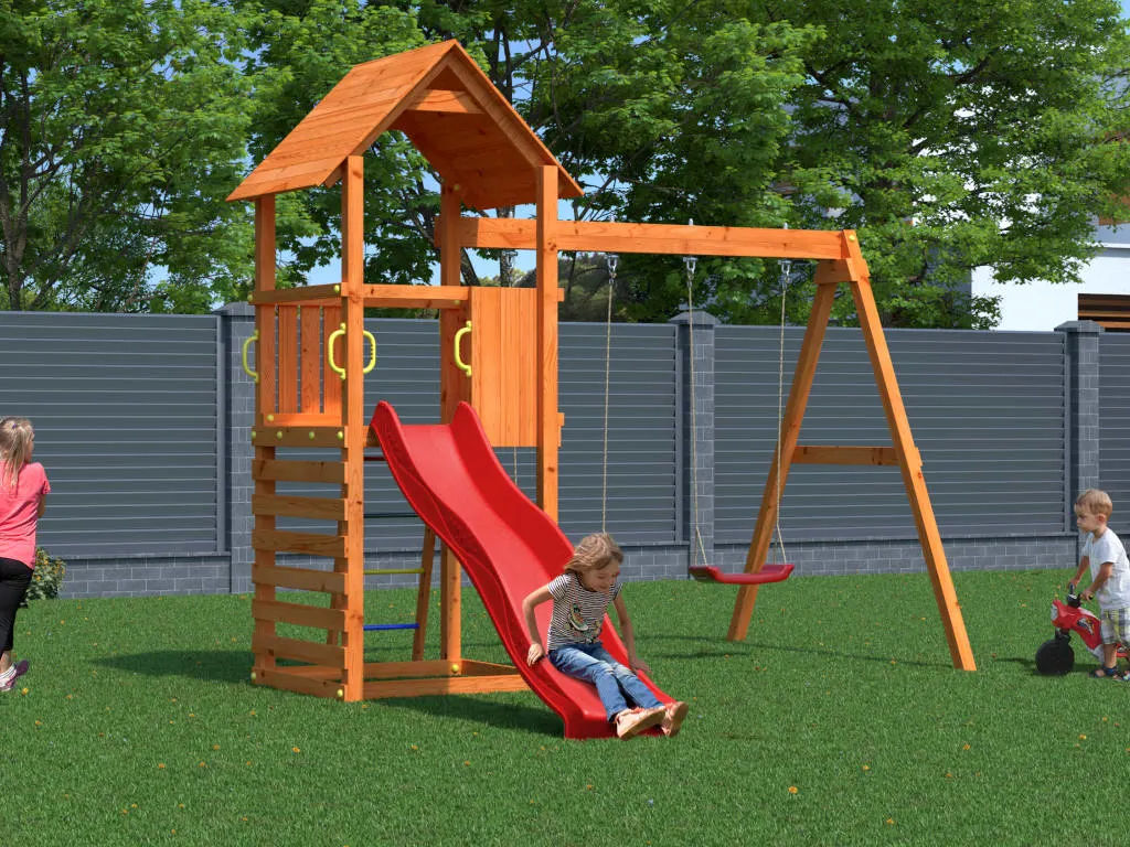 Für noch mehr Abwechselung sorgt der Anbau mit zwei Schaukeln, der mehr Platz zum Spielen bietet und problemlos auch von mehreren Kindern gleichzeitig benutzt werden kann.