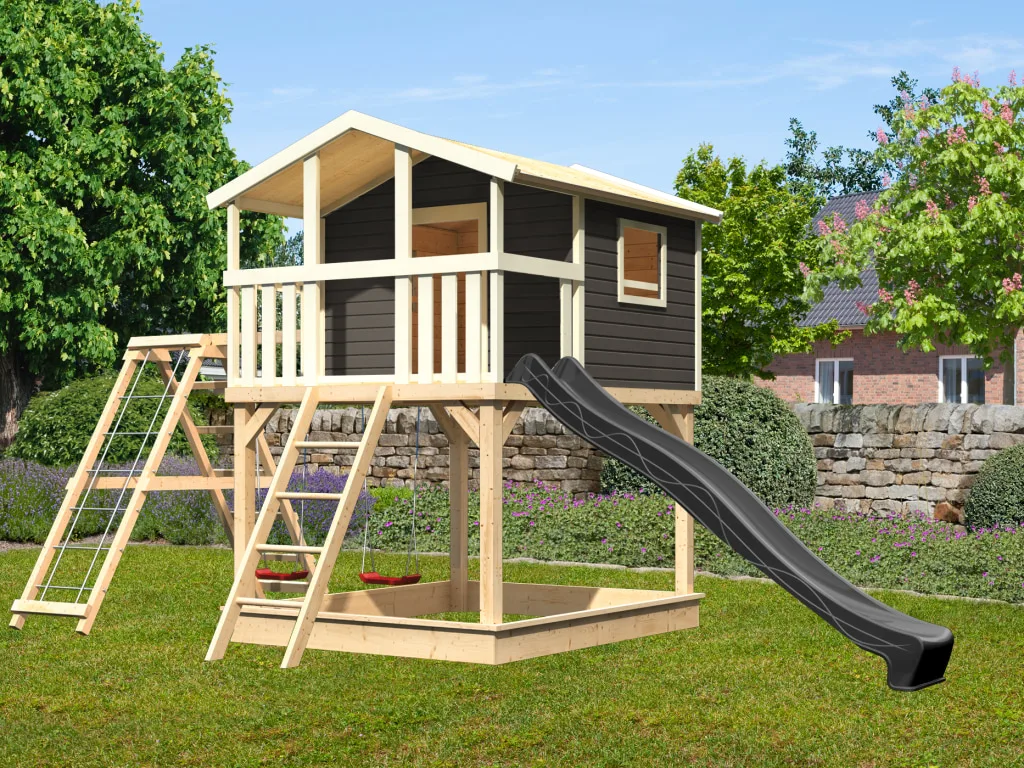 Dieses Spielhaus bietet deinem Kind ein eigenes Reich in erwachsenenfreier Zone. Das Häuschen steht auf Stelzen – um hoch hinauszukommen, ist kindlicher Bewegungseifer gefragt. Stelzenhäuser sind die sichere, stabile Alternative zum Baumhaus und der perfekte Ort für geheime Clubtreffen. Das Außenmaß des Spielhauses beträgt 198 x 243 cm. Mit einer Grundfläche von 2,95 m² lässt es sich hier wunderbar spielen und toben. Die Wandstärke von 19 mm sorgt für Stabilität.