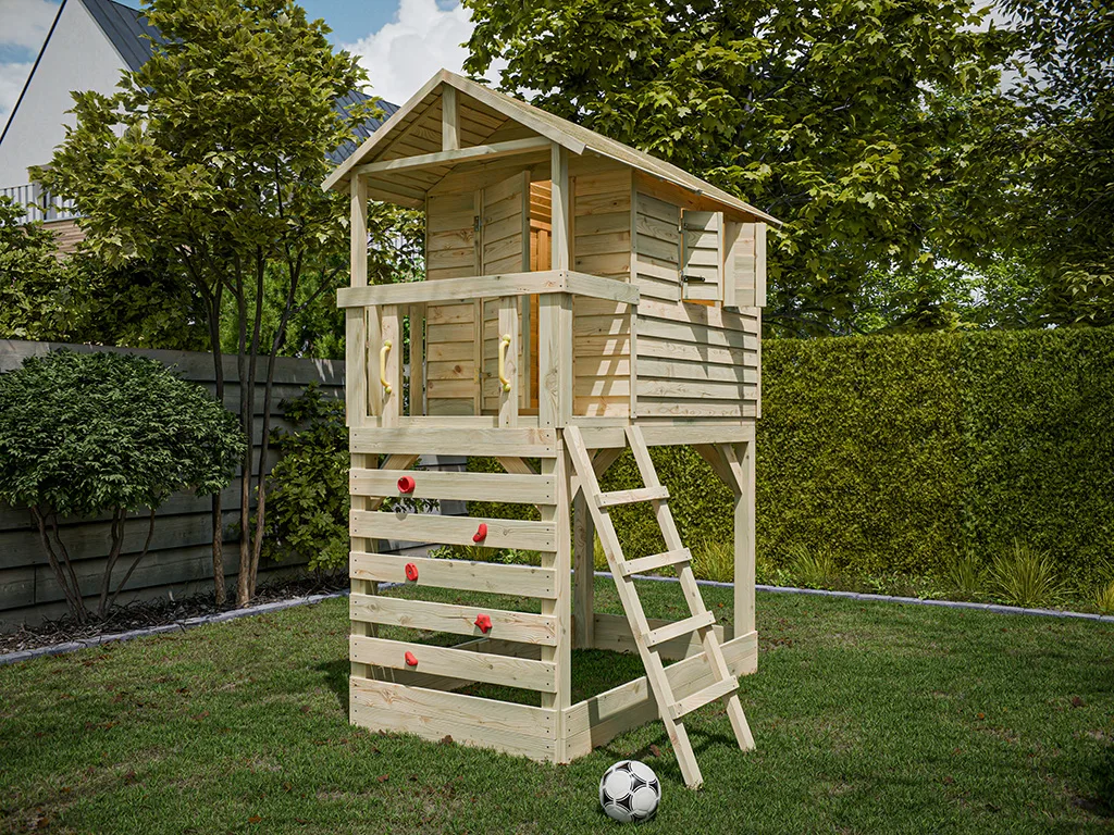 | Lieferumfang | Stelzenhaus Luis, Kletterwand, 5 Klettersteine, Leiter, 2 Haltegriffe, Beschläge, Montageanleitung |