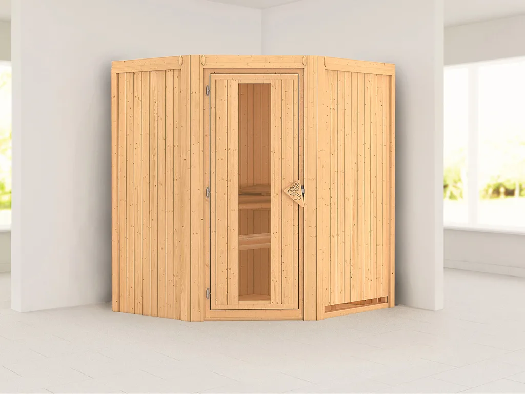 Dieses Saunamodell – eine System- bzw. Elementsauna – zeichnet sich durch seine besondere Sandwich-Bauweise aus, d.h. die Wandelemente bestehen aus einzelnen Schichten. Die bereits vorgefertigten Wandelemente ermöglichen einen schnellen Aufbau innerhalb weniger Stunden.