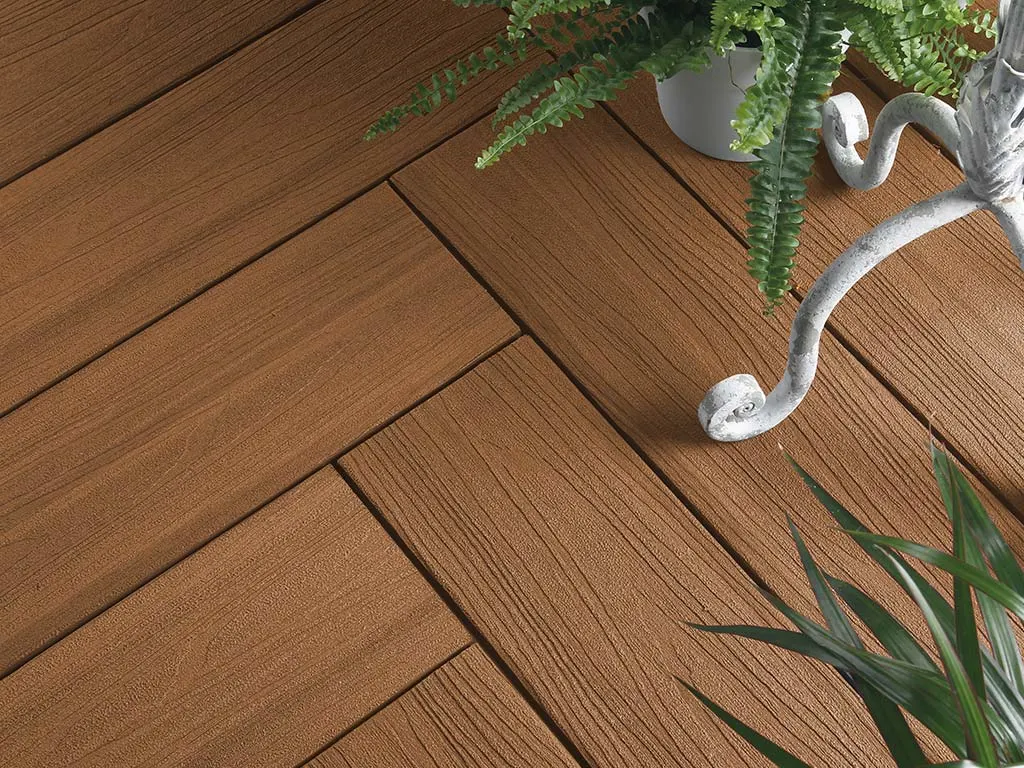 Diese 23 mm starken Terrassendielen werden aus WPC hergestellt und sind mit einer speziellen holzfreien Hartkappenschicht ummantelt.