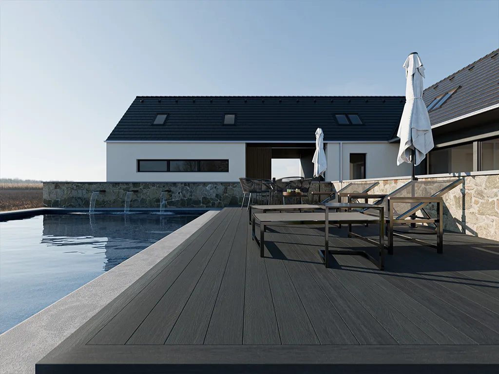 Bei coextrudierten Terrassendielen wird der WPC-Kern komplett mit Kunststoff ummantelt. Dadurch wird die Beständigkeit gegen Feuchtigkeit, Schimmel und Insekten noch erhöht. Gleichzeitig sorgt das Verfahren dafür, dass die äußere Schicht länger schön bleibt.