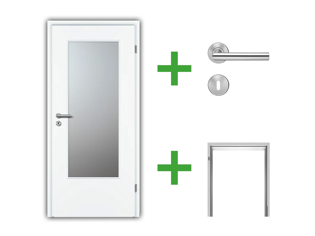 Türenset CPL Premium Weißlack RAL 9016 mit Lichtausschnitt - Türblatt, Zarge, Drückergarnitur