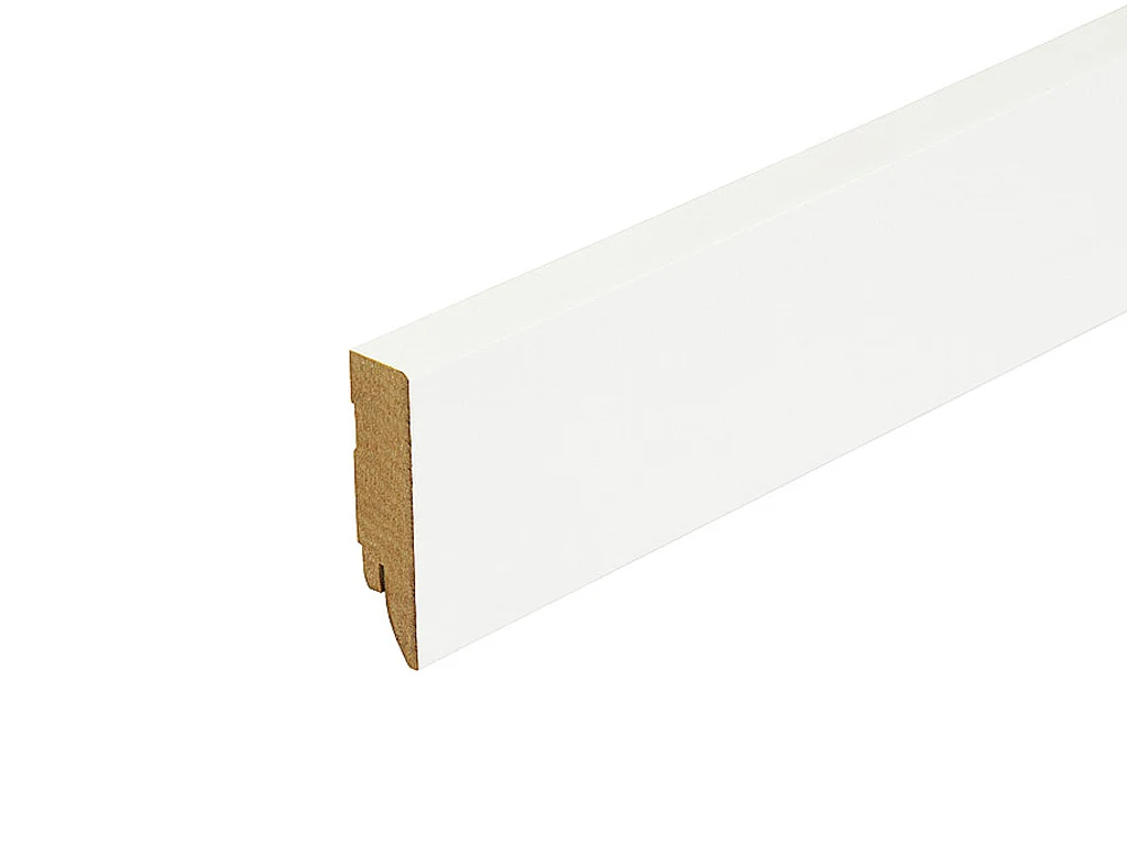 Sockelleisten mit stabilem MDF Kern und lackierter Oberfläche.