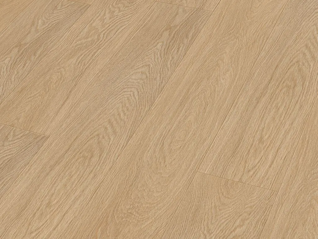 Die typische Eichenholzmaserung des Dekors strahlt zeitlose Klasse und behagliche Wärme aus. Die rustikal wirkenden Landhausdielen betonen mit ihrer 1-Stab-Optik den traditionellen Charakter der Holzoptik. Die an vier Seiten umlaufende Fase strukturiert das Verlegebild und verleiht ihm ein gleichmäßiges Muster.