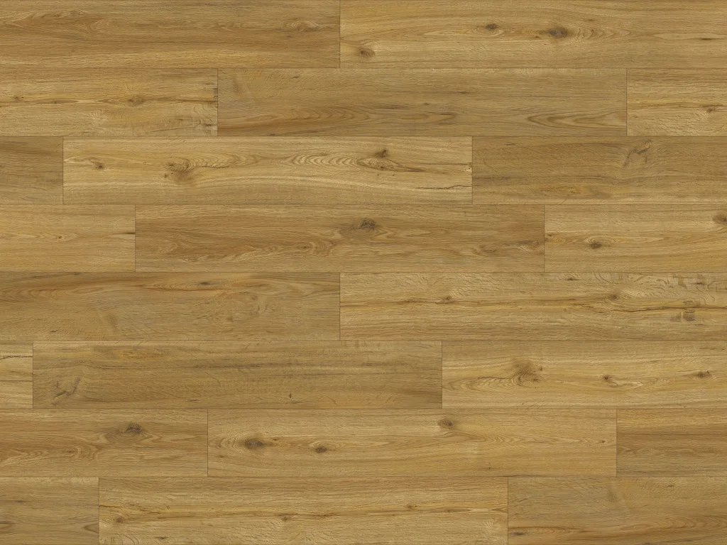Die markante Eichenholzmaserung des Dekors vermittelt Behaglichkeit und natürliche Lebendigkeit. Landhausdielen wirken mit ihrer 1-Stab-Optik elegant, rustikal und voller Charakter. Die 4-seitig umlaufende V-Fuge betont den Dielencharakter. Aufgrund ihrer glatten Oberflächenstruktur sind die Dielen zeitlos elegant und pflegeleicht.
