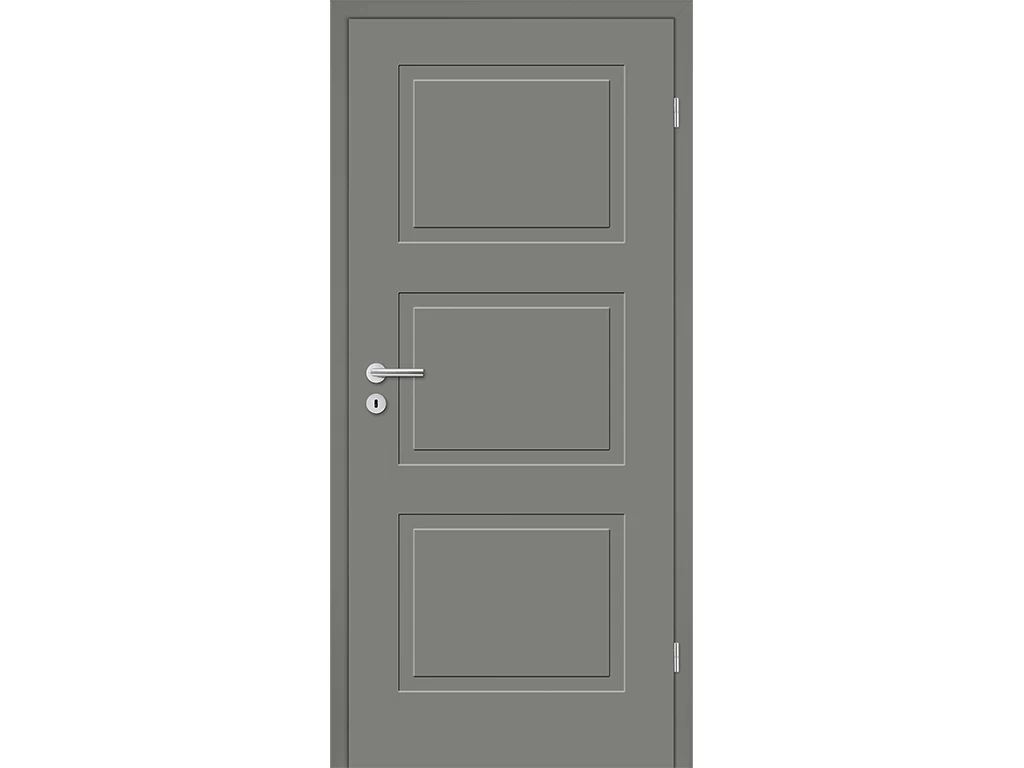 Das Türblatt hat eine Designkante. Diese Kantenform zeichnet sich durch eine leicht abgerundete Eckkante aus, die mit eckigen Oberseiten kombiniert ist. Die Rundkante ist jedoch nicht so stark ausgeprägt und hat eine ca. 2 mm kleine Kantenrundung. Durch die leichte Rundung ist die Kante robuster und unempfindlicher gegen Stöße. Das Türblatt ist gefälzt, das heißt, die Türkante in L-Form liegt auf dem Türrahmen/der Zarge auf. Dadurch wird der Spalt zwischen Zarge und Türblatt ideal abgedichtet. Es können weniger Geräusche, Licht und Luft durchdringen.