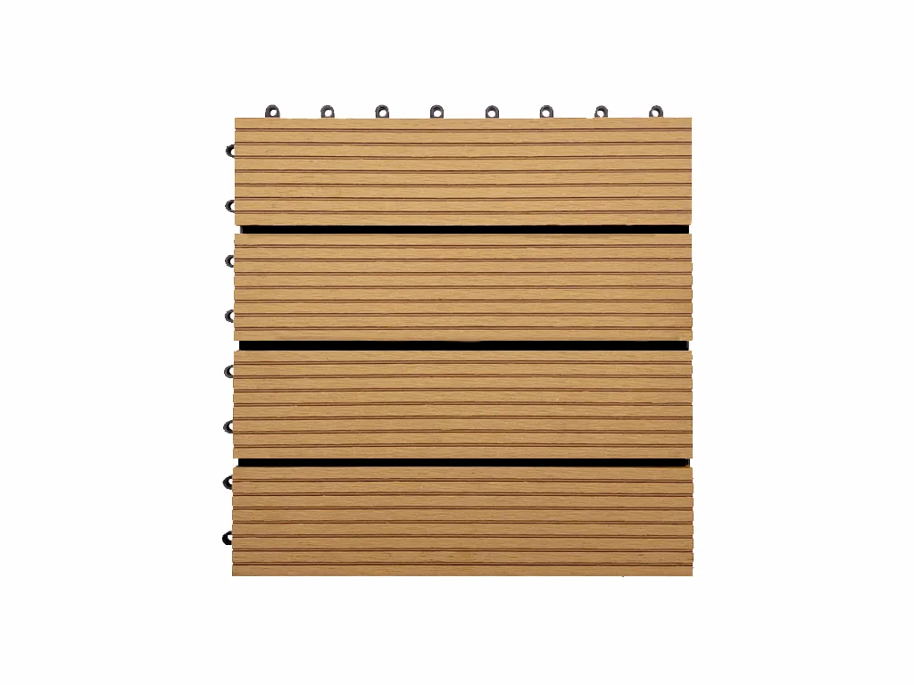 Diese 21 mm starken Terrassenfliesen werden aus WPC hergestellt. WPC (Wood Plastic Composite) ist eine Verbindung aus ca. 70 % Holz und 30 % Kunststoff mit vielen Vorteilen. Dieser Verbundwerkstoff ist nicht nur leicht zu pflegen und reinigen, sondern auch witterungsbeständig, form- und farbstabil, splitterfrei sowie rutschfest – der ideale Terrassenbelag. Außerdem zeichnet er sich durch die hohe Dichte aus, die ihn gut vor Insektenbefall schützt.