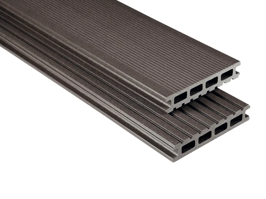 Diese 26 mm starke Terrassendielen werden aus WPC hergestellt.