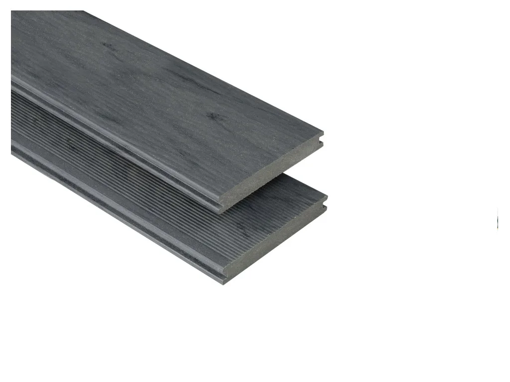 Diese 20 mm starke Terrassendielen werden aus WPC hergestellt.