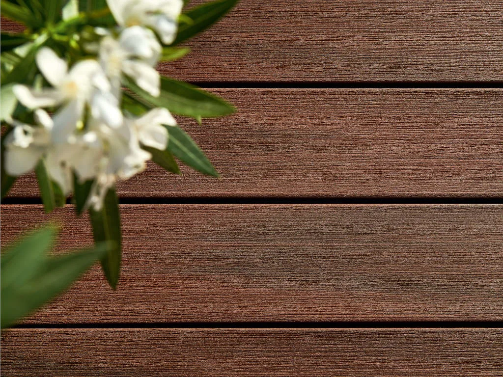 Diese 21 mm starke Terrassendielen werden aus WPC hergestellt.