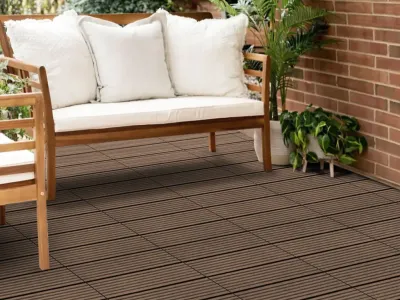 Die WPC Terassenfliesen sind einfach zu montieren, liegen auch bei kleinen Unebenheiten ohne zu wackeln. Sie sind wetterfest und rutschsicher (außer wenn sie naß sind).