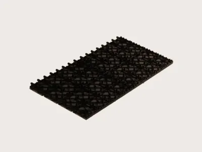 Leichte Verlegung Der Boden lässt sich sehr leicht verlegen und ebenso wieder demontieren. Die Fliesen sind auf einem Trägerrost aus Kunststoff montiert und werden nur zusammengesteckt.