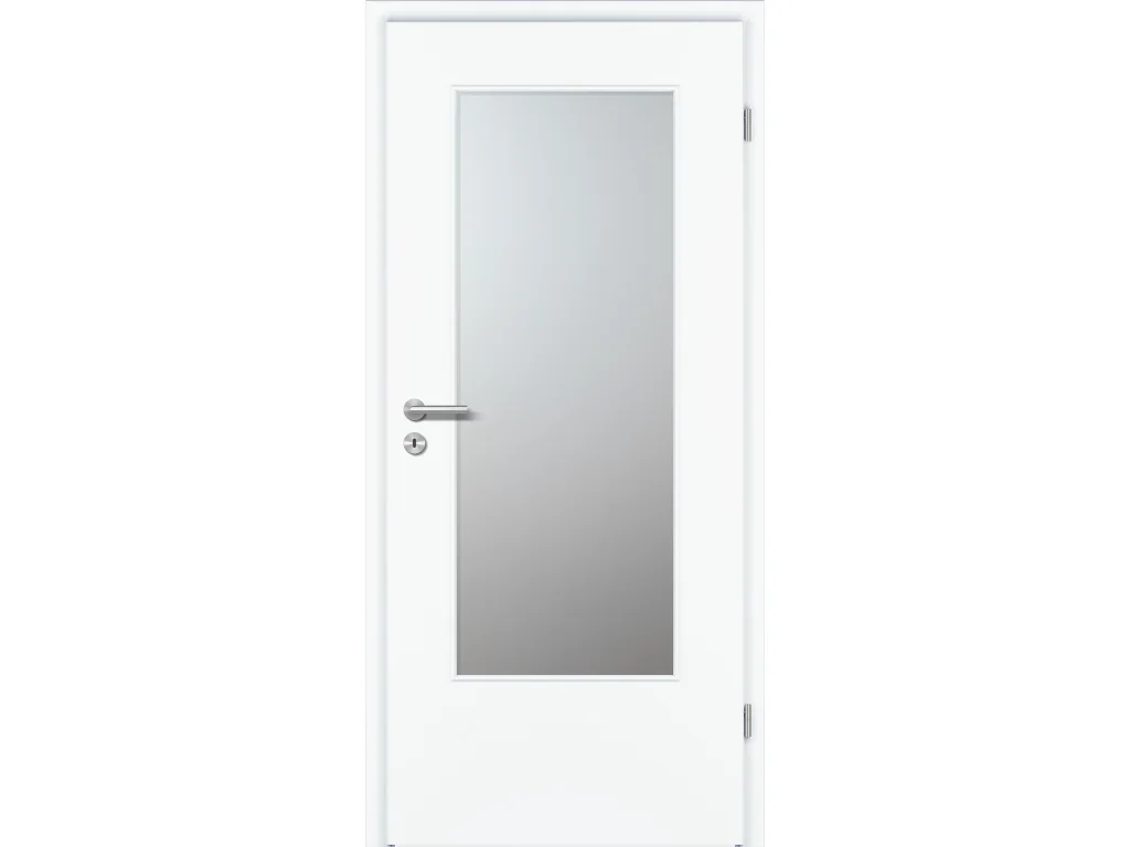 Zimmertür CPL Premium Weißlack RAL 9016 mit Lichtausschnitt, Premiumkante, Buntbart-Schloss