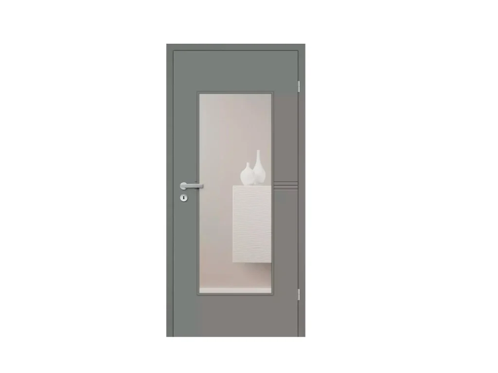 Zimmertür Mala 16 Lavagrau RAL7037 mit Lichtausschnitt - 98,5 x 211 cm - DIN-Rechts