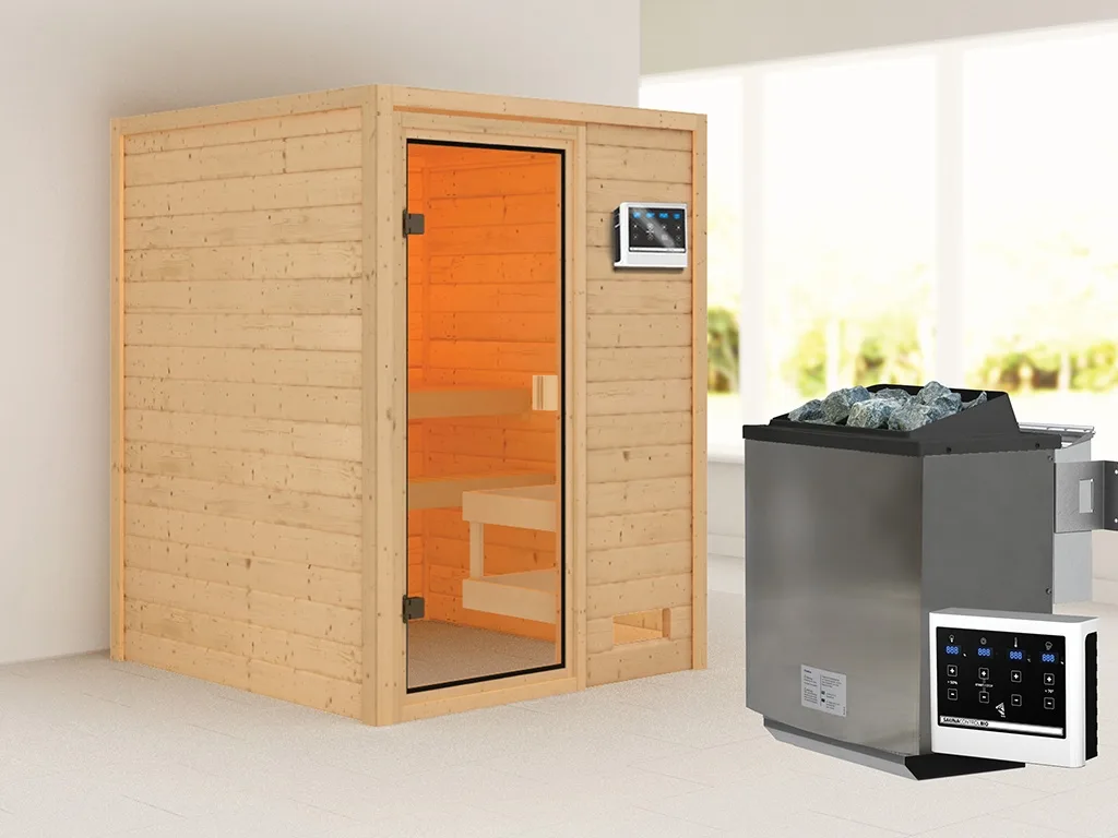 Unsere Wellnessartikel (Saunen, Saunahäuser, Saunafässer, Kotas, Infrarotkabinen, Saunaöfen etc.) dürfen nur für den privathäuslichen Gebrauch verwendet werden! Saunaöfen und dazugehörige Steuerelemente dürfen nur durch einen örtlich zugelassenen Elektroinstallateur mittels festem Anschluss an das Netz angeschlossen werden. Ausnahme: 230 Volt Plug-&-Play-Saunaöfen. Die Mindestsicherheitsabstände vom Ofen zur Wand und vom Ofen zum Ofenschutz müssen unbedingt eingehalten werden. Bei 9-kW-Öfen muss die Höhe des Ofenschutzes angepasst werden. Bitte beachte zu den obig genannten Hinweisen die beigefügten Montageanleitungen.