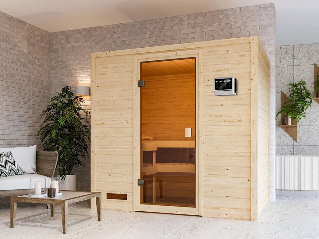 Sauna Massivholzsauna Selena, inkl. 9 kW Ofen mit externer Steuerung