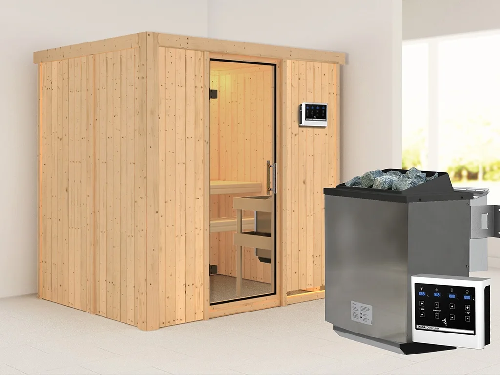 Sauna Systemsauna Bodin, inkl. 9 kW Bio-Ofen mit externer Steuerung