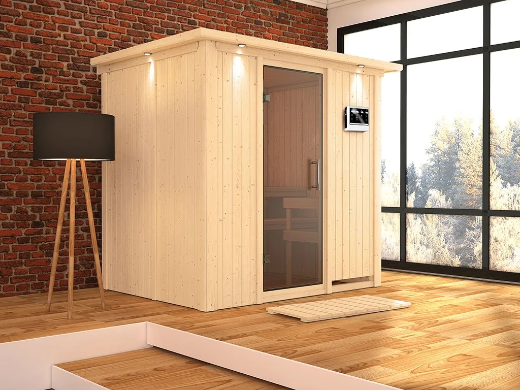 Unsere Wellnessartikel (Saunen, Saunahäuser, Saunafässer, Kotas, Infrarotkabinen, Saunaöfen etc.) dürfen nur für den privathäuslichen Gebrauch verwendet werden! Saunaöfen und dazugehörige Steuerelemente dürfen nur durch einen örtlich zugelassenen Elektroinstallateur mittels festem Anschluss an das Netz angeschlossen werden. Ausnahme: 230 Volt Plug-&-Play-Saunaöfen. Die Mindestsicherheitsabstände vom Ofen zur Wand und vom Ofen zum Ofenschutz müssen unbedingt eingehalten werden. Bei 9-kW-Öfen muss die Höhe des Ofenschutzes angepasst werden. Bitte beachte zu den obig genannten Hinweisen die beigefügten Montageanleitungen.