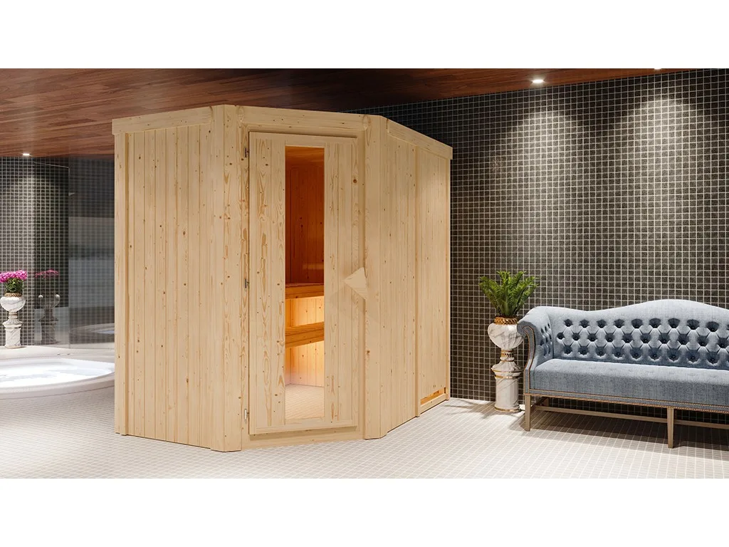 Dieses Saunamodell – eine System- bzw. Elementsauna – zeichnet sich durch seine besondere Sandwich-Bauweise aus, d. h., die Wandelemente bestehen aus einzelnen Schichten. Die bereits vorgefertigten Wandelemente aus Fichte ermöglichen einen schnellen Aufbau innerhalb weniger Stunden. Mit einer Wandstärke von 68 mm sind Systemsaunen optimal isoliert und somit besonders energiesparend. Wegen der sehr gut gedämmten Elemente heizt sich die Systemsauna extra schnell auf.