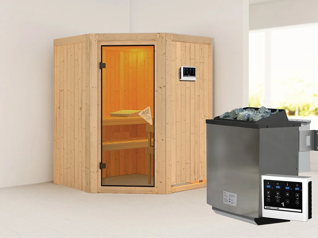 Sauna Systemsauna Larin, inkl. 9 kW Bio-Ofen mit externer Steuerung