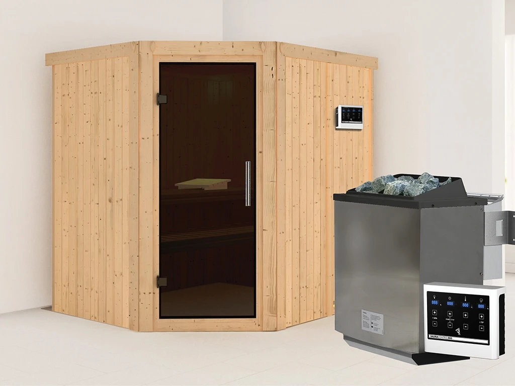 Sauna Systemsauna Siirin, inkl. 9 kW Bio-Ofen mit externer Steuerung