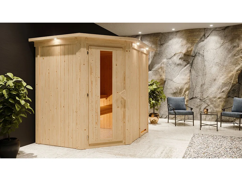 Sauna Systemsauna Siirin mit Dachkranz, inkl. 9 kW Ofen mit integrierter Steuerung