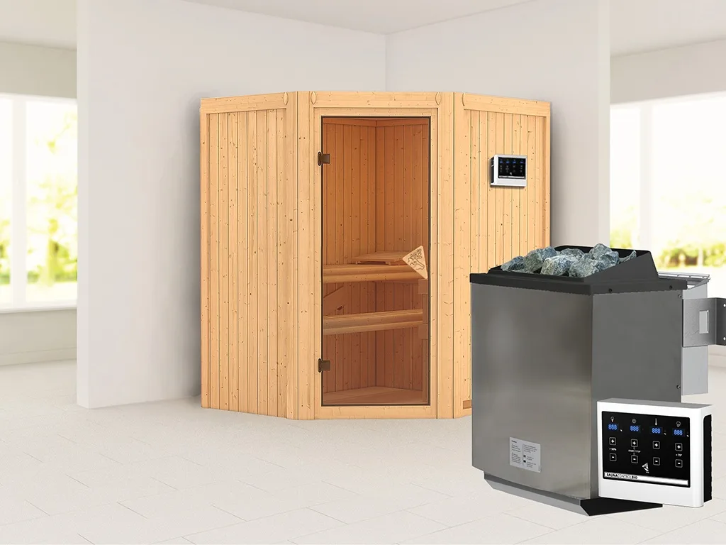 Sauna Systemsauna Taurin, inkl. 9 kW Bio-Ofen mit externer Steuerung